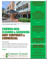 Common Ground Property Services specialise in common area cleaning and gardening for body corporate complexes (residential and commercial) and provide prompt and professional quotes.